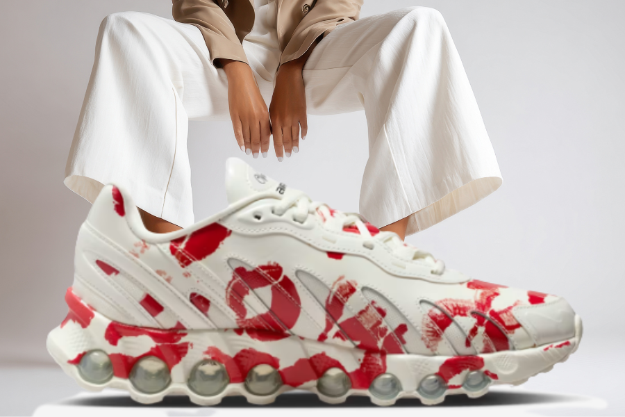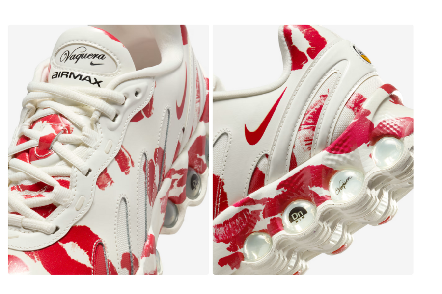 Vaquera und Nike bringen den Air Max DN8 genau dahin, wo Fashion und Experiment ineinandergreifen: Hochglanz, Metallic, visuelle Provokation. Dieser DN8 in Sail / Prime Red wirkt wie eine Mischung aus Runway-Punk, futuristischer Tech-Energie und einer Prise Attitude, die klar signalisiert: Das hier ist kein neutraler Alltags-Sneaker – das ist ein Statement.